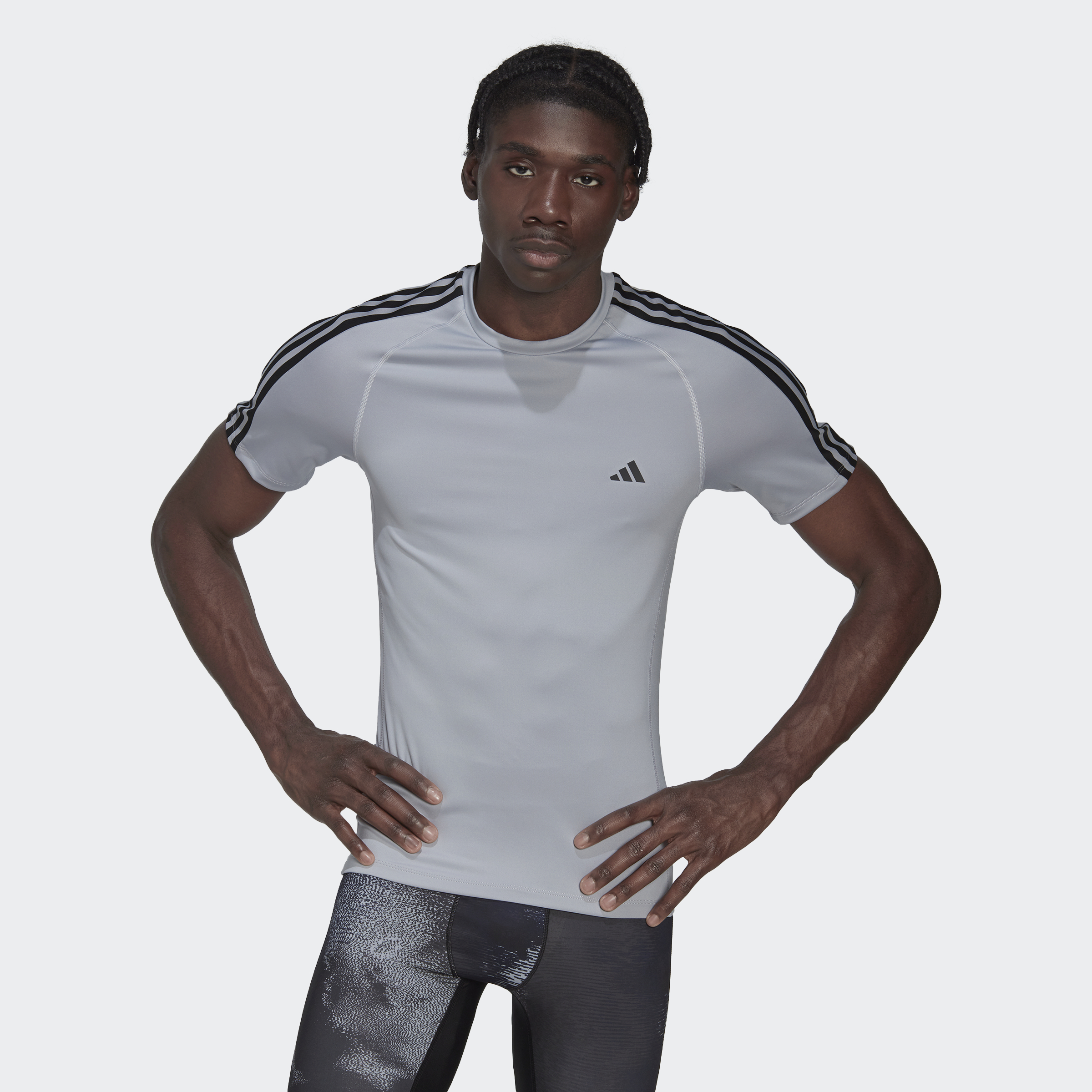 adidas Training Techfit 3-Stripes Training Tee Men Grey HJ9914